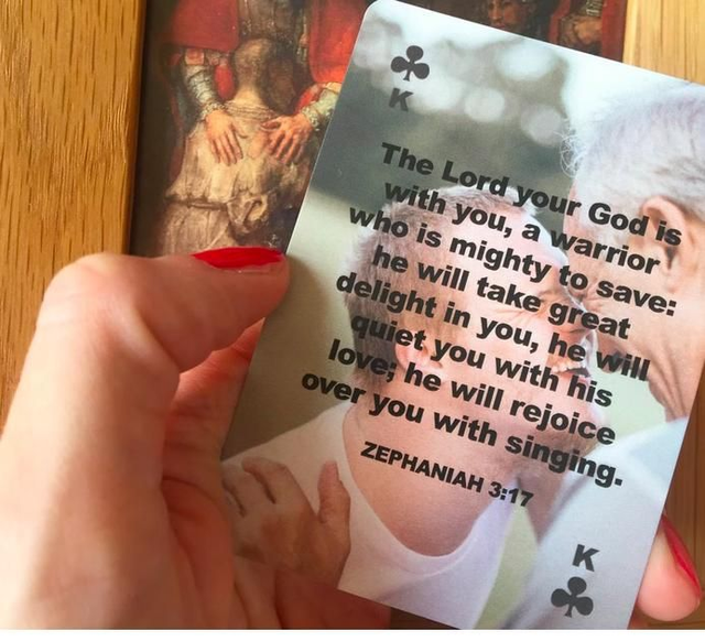 Want to learn one Bible verse each week of the year? Or just want to play a game of cards? Look no further. These are a full set of playing cards containing Bible verses.